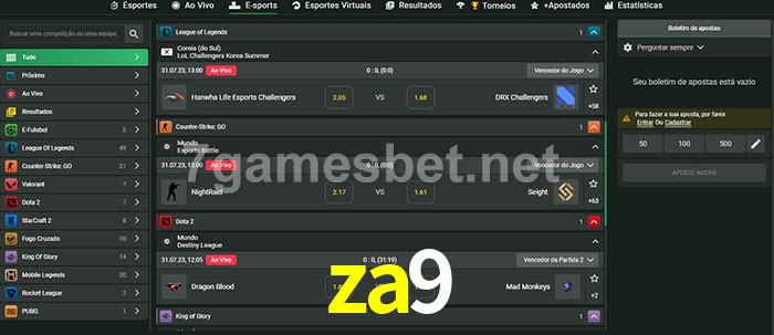 A aposta za9 oferece aos jogadores a experiência mais conveniente de apostas em eSports!